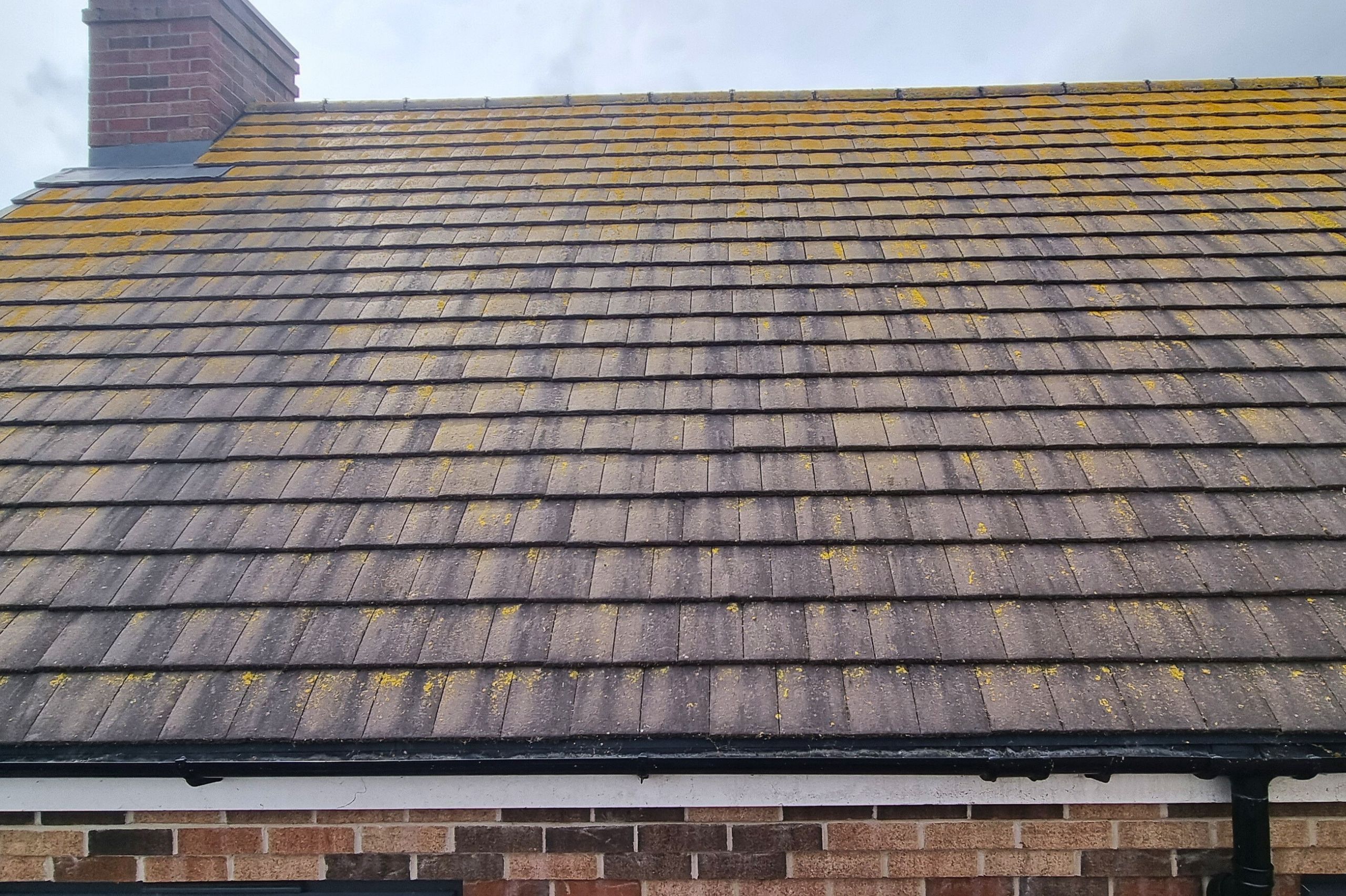 Moss growth on your roof can trap moisture, lift tiles, and block gutters. Our roof moss removal and treatment service eliminates these issues fast. We start by washing the roof to remove debris, then apply a professional-grade biocide roof treatment to stop moss and lichen from returning.